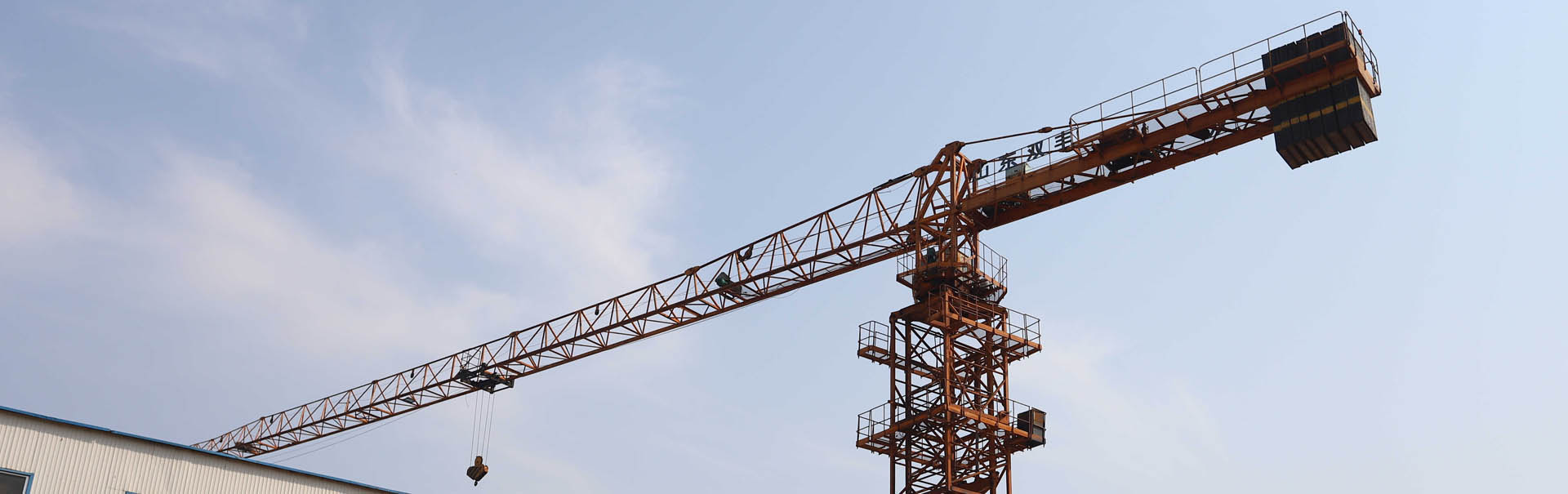 該機(jī)為水平臂架、小車變幅、上回轉(zhuǎn)液壓頂升式起重機(jī)。該機(jī)各項(xiàng)性能參數(shù)及技術(shù)指標(biāo)均達(dá)到標(biāo)準(zhǔn)。最大工作幅度為55m,獨(dú)立式起升高度為46.2m,附著式起升高度可達(dá)151.2m,額定起重力矩880 kN·m,最大起重力矩為1057.7 kN·m。